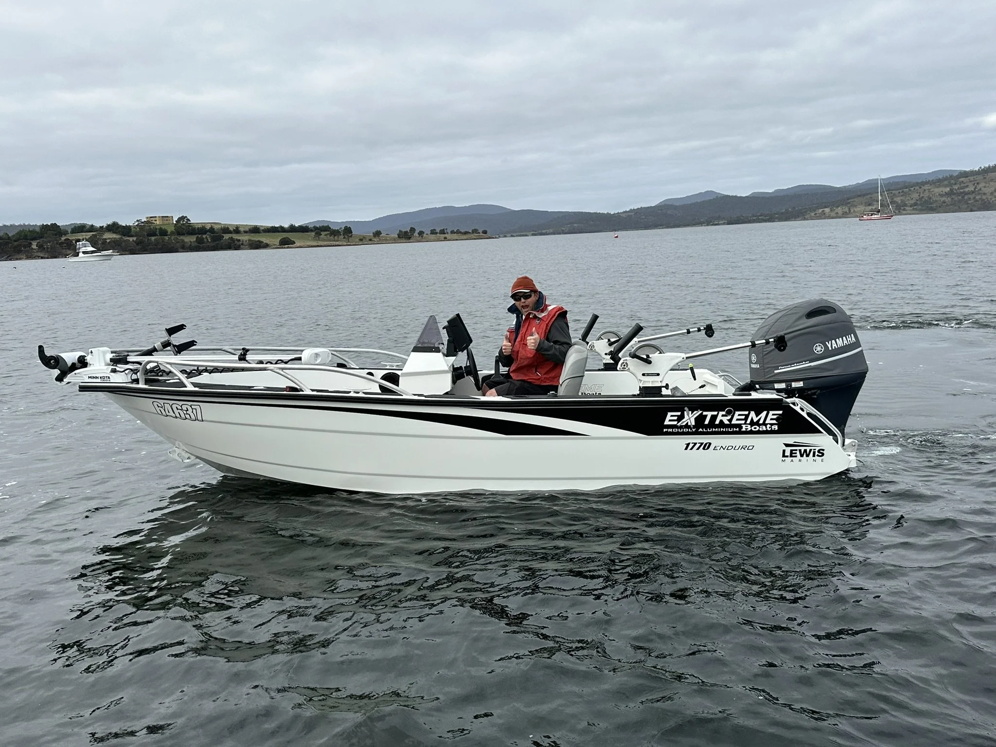 A NZ made Extreme Boats 1770 Enduro side console. Chosen for its safety and stability this vessel is in AMSA 2D survey. It has a raised floor, fore and aft to give you better vision into the water and to cast from. It has an electronics suite second to none in the Tasmanian guide fleet. 2× Lowrance HDS Pro 16’s and 2x Active Target 2 systems that can work independantly in scout and forward mode at the same time. With this setup, you will see the fish that other boats miss.