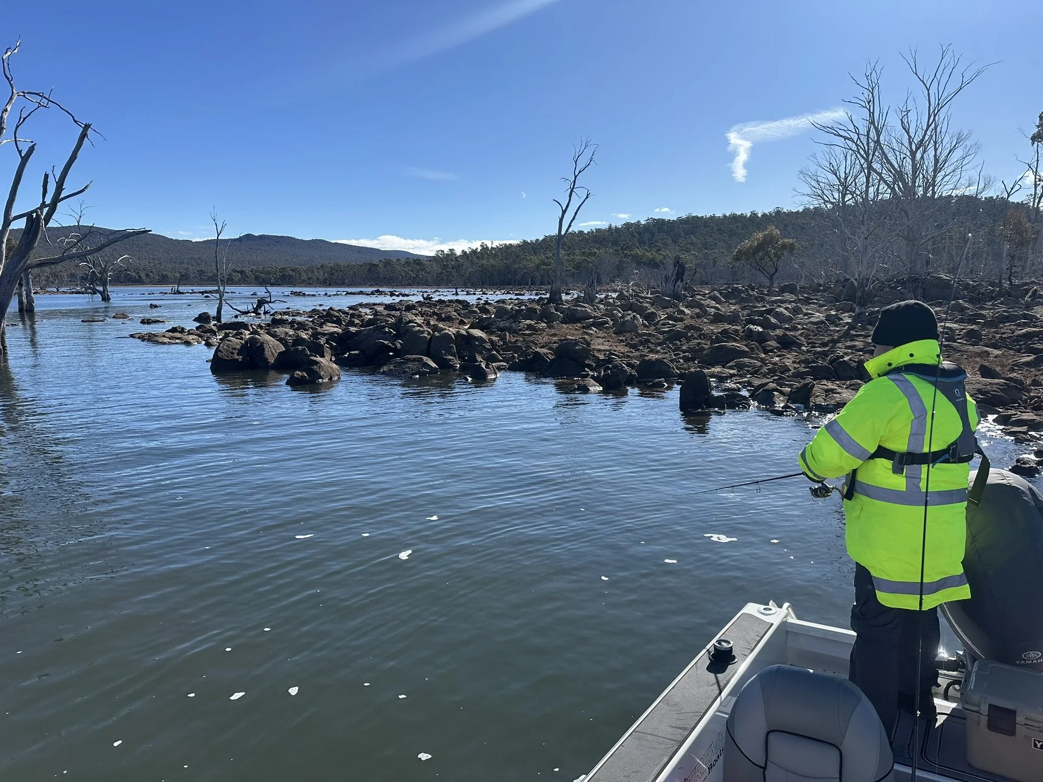 Casting in amongst structure on or close to the shorelines and shallows. Concentrating on the points, rocks, drowned timber and weedbeds, tricking trout with an irresistible high protein substitute.